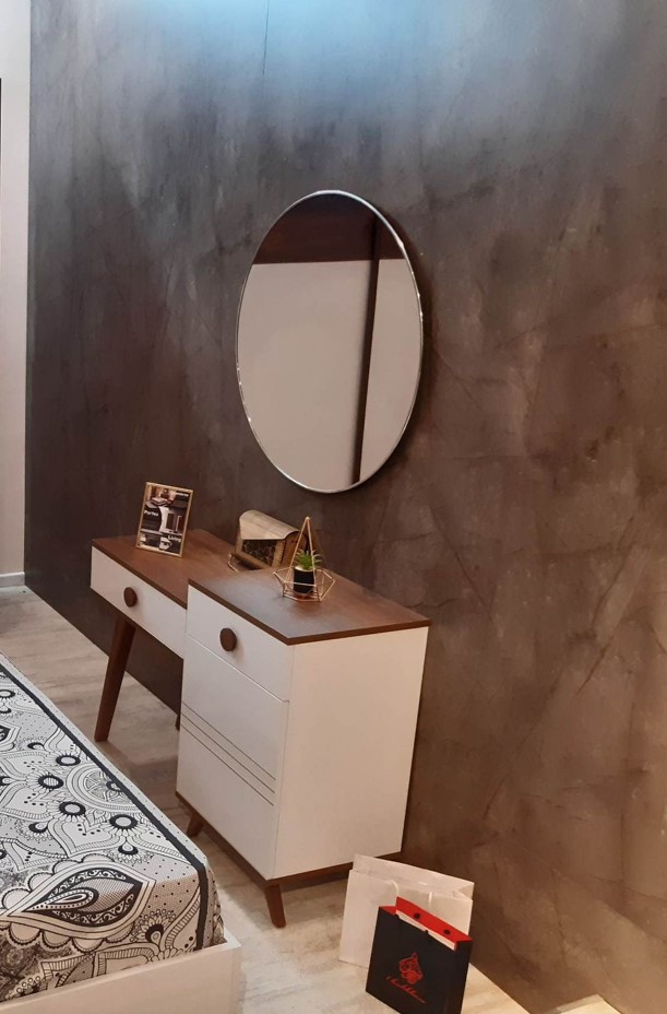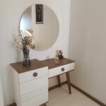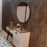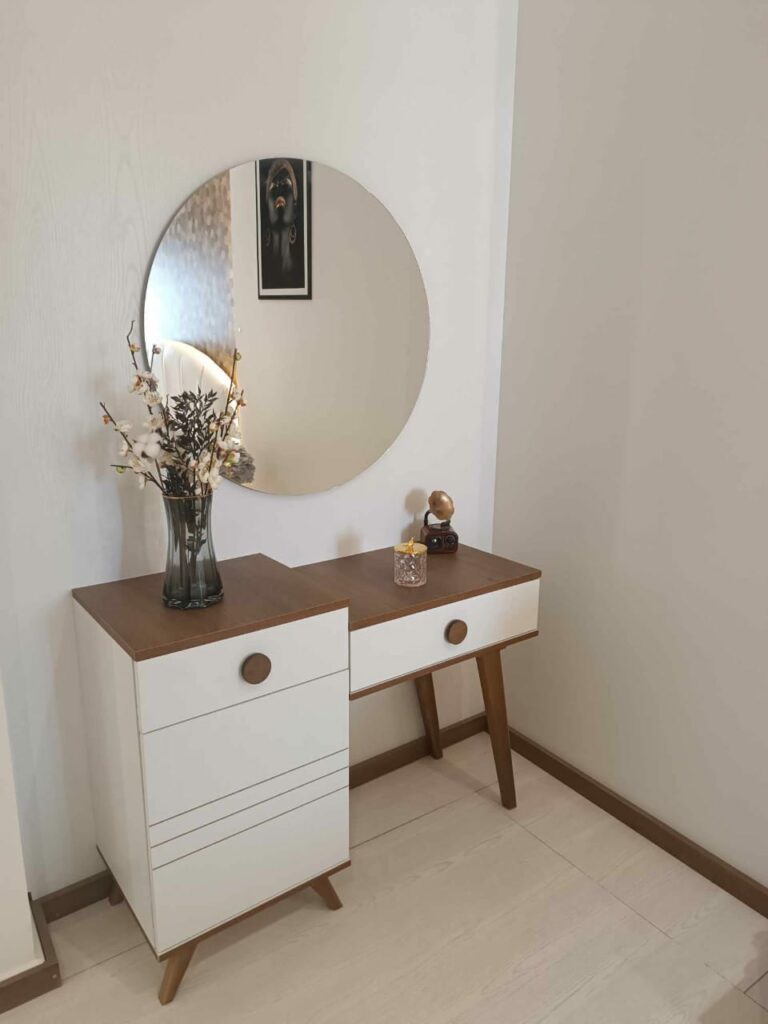 Un espace de beauté raffiné et fonctionnel. Cette coiffeuse asymétrique