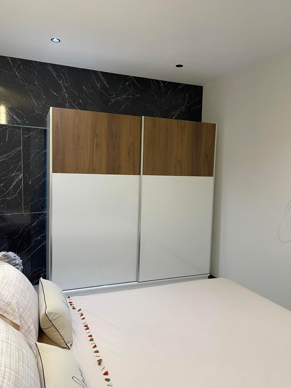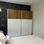 Finitions Soignées : L’alliance du bois texturé chaleureux, du blanc brillant