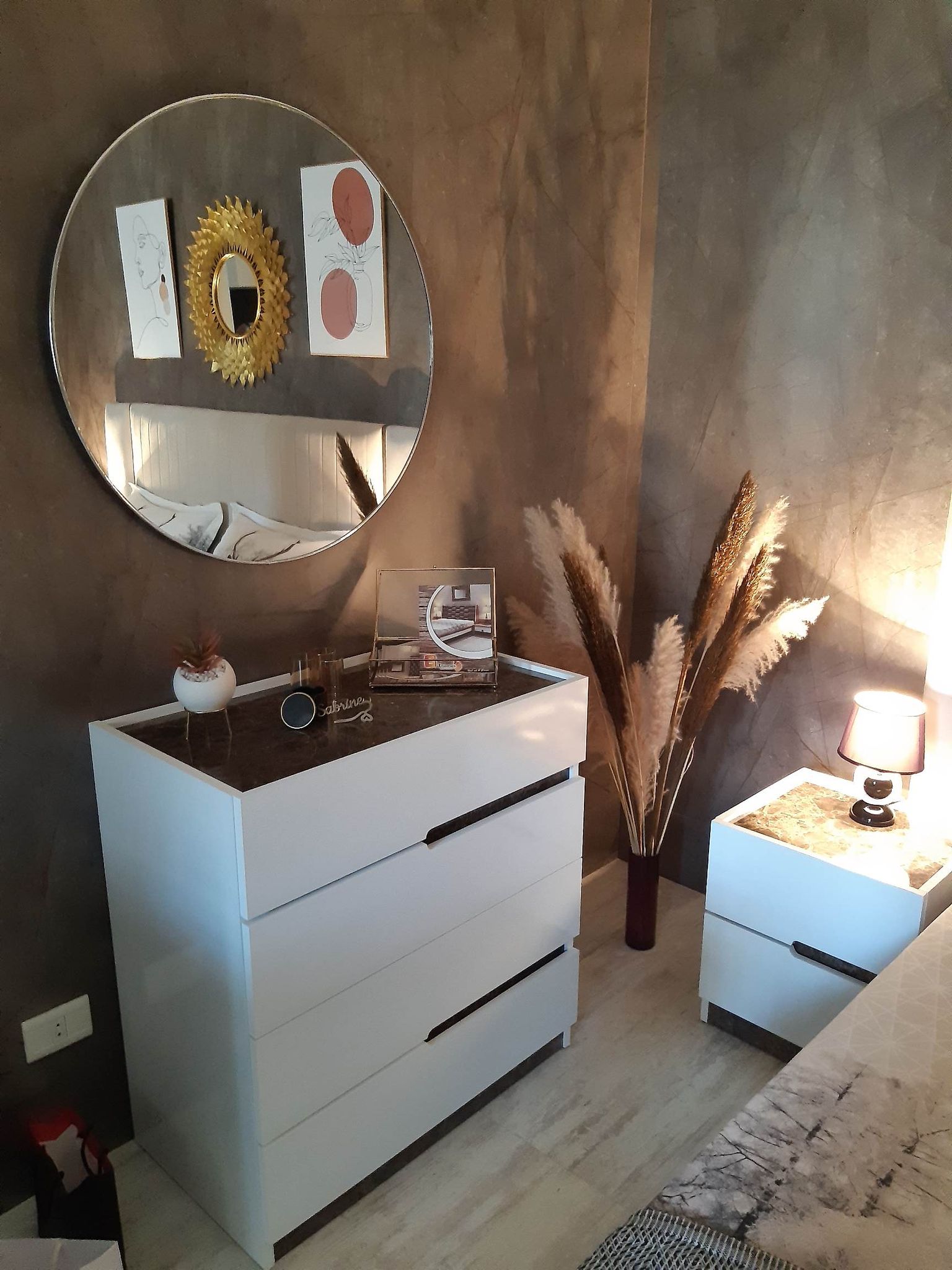 comprend une commode à 4 tiroirs avec un grand miroir rond pour vos