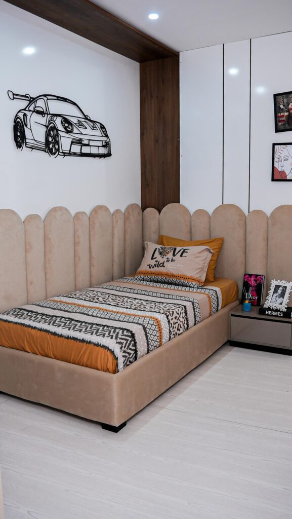La Chambre Lady est l'alliance parfaite entre design scandinave et confort absolu pour les jeunes. 🛏 Lit (1m20 x 2m) : Entièrement capitonné en tissu velours avec couleur personnalisable. 👗 Armoire Astucieuse : Grand volume de rangement doté d'une niche latérale décorative. 💻 Espace Travail : Bureau spacieux au fini bois naturel et blanc. 🌙 Table de Nuit : Design bicolore élégant et pratique. ✨ Le plus : Un style intemporel qui s'adapte à tous les âges. Créez un cocon unique pour votre enfant avec la collection Dolce. Contactez-nous pour personnaliser vos couleurs !