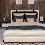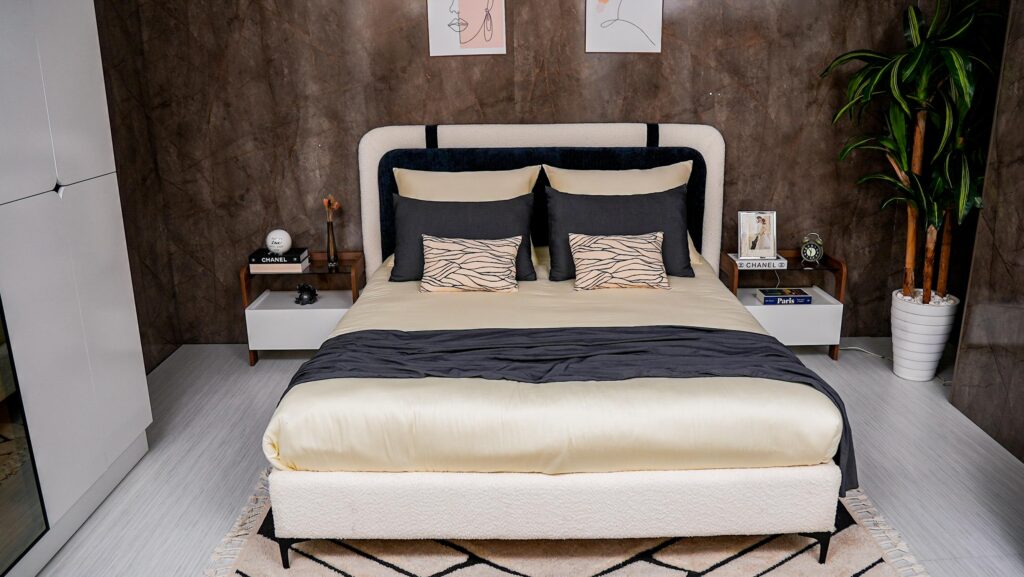 structure du lit. La tête de lit majestueuse, encadrée par un liseré sombre