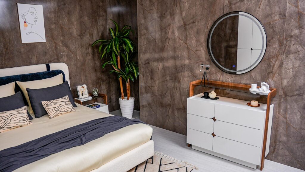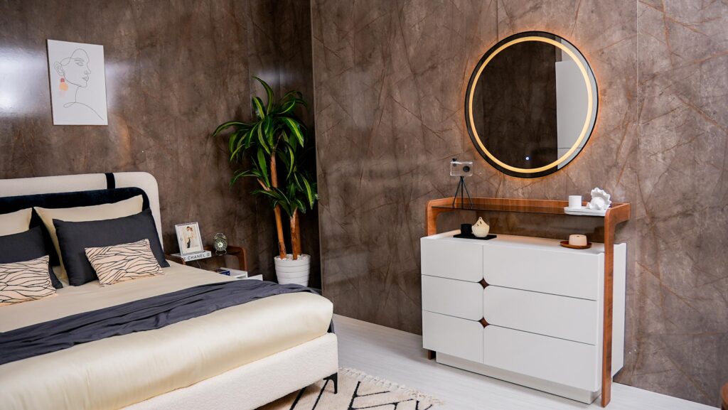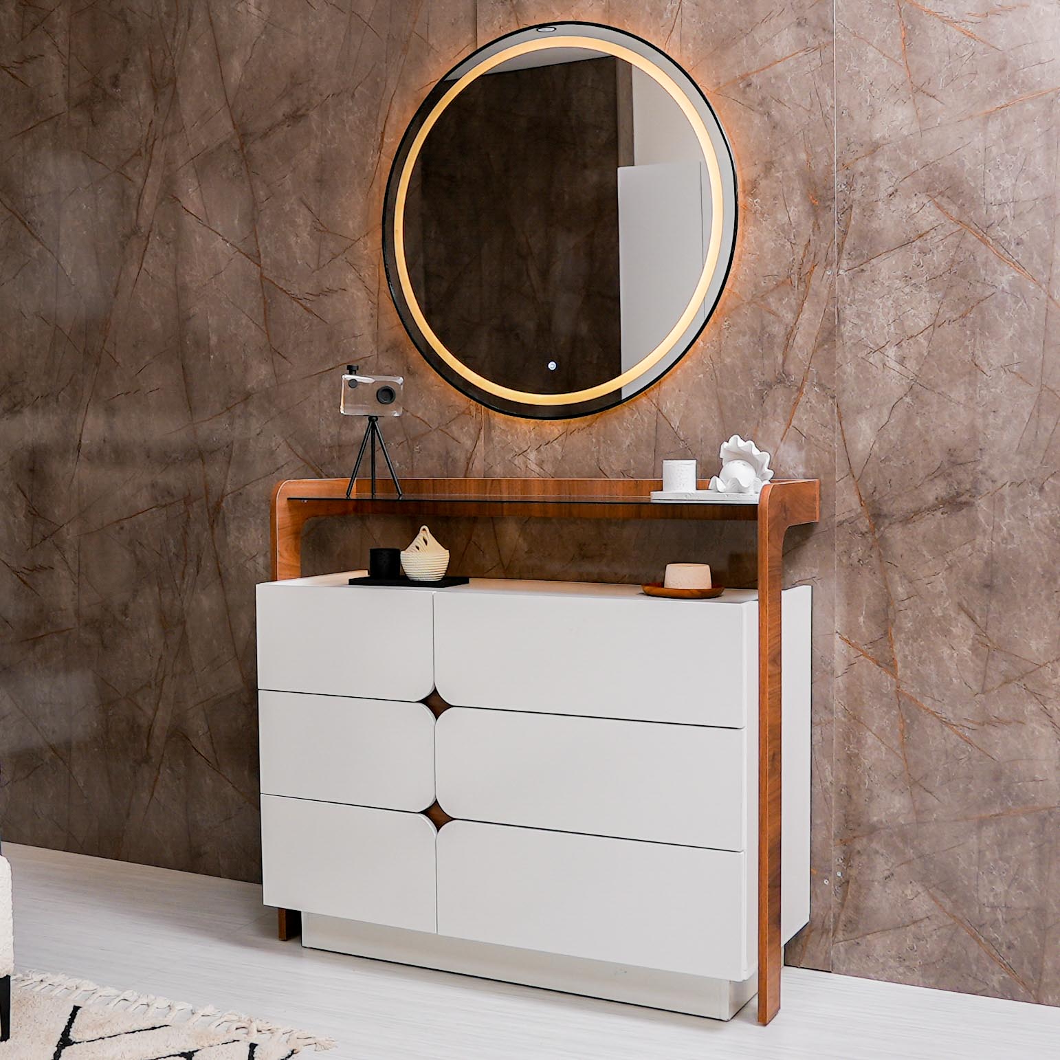 Un Espace Beauté Épuré La coiffeuse (modèle sans pouf et sans LED) complète