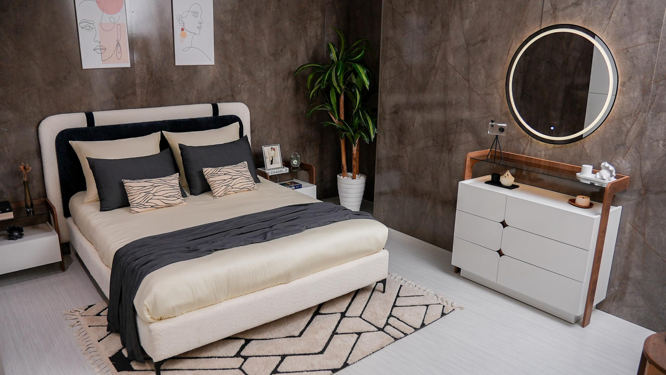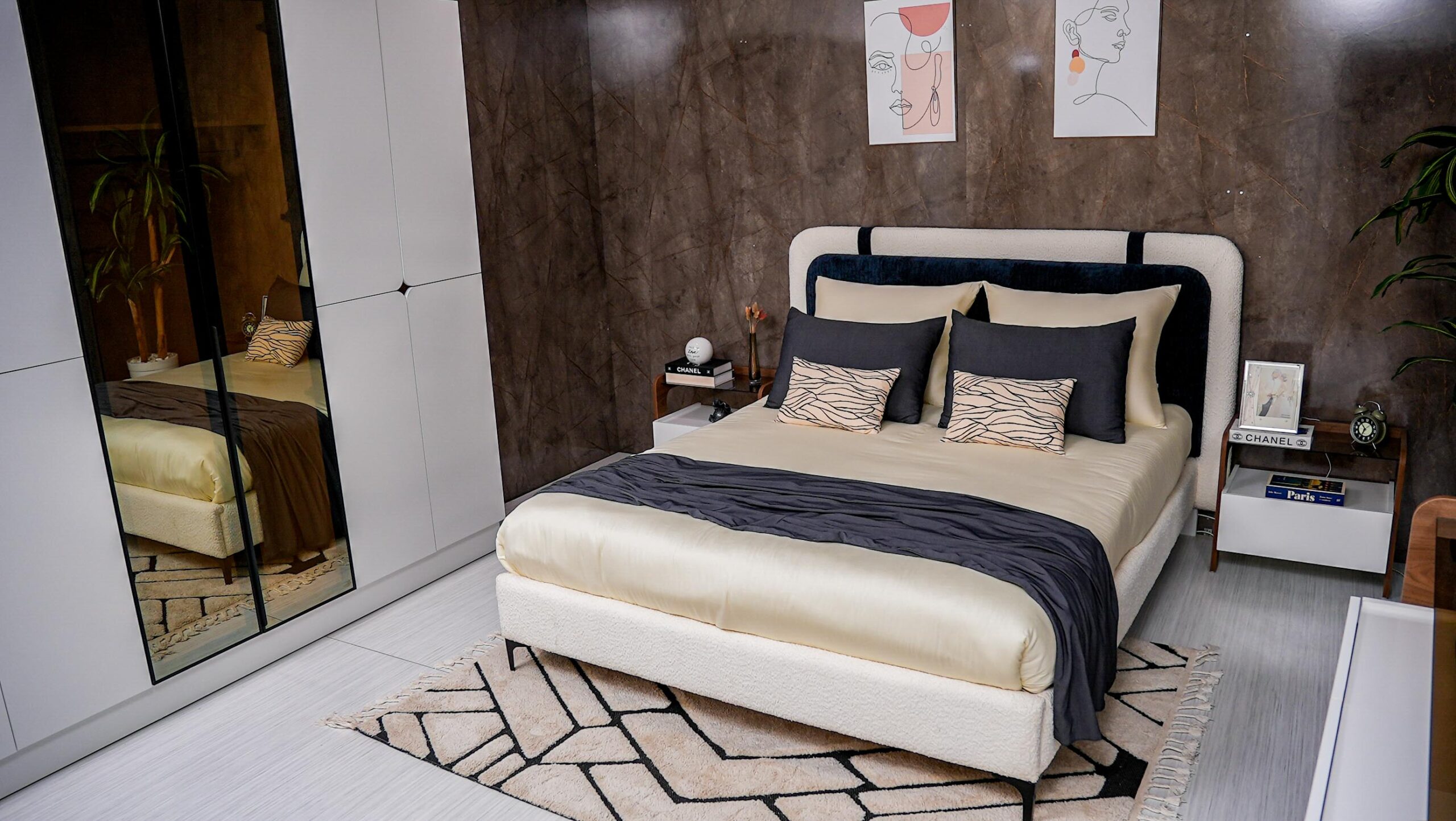 Un Confort Absolu en Tissu Bouclette La pièce maîtresse est son lit de 160 x