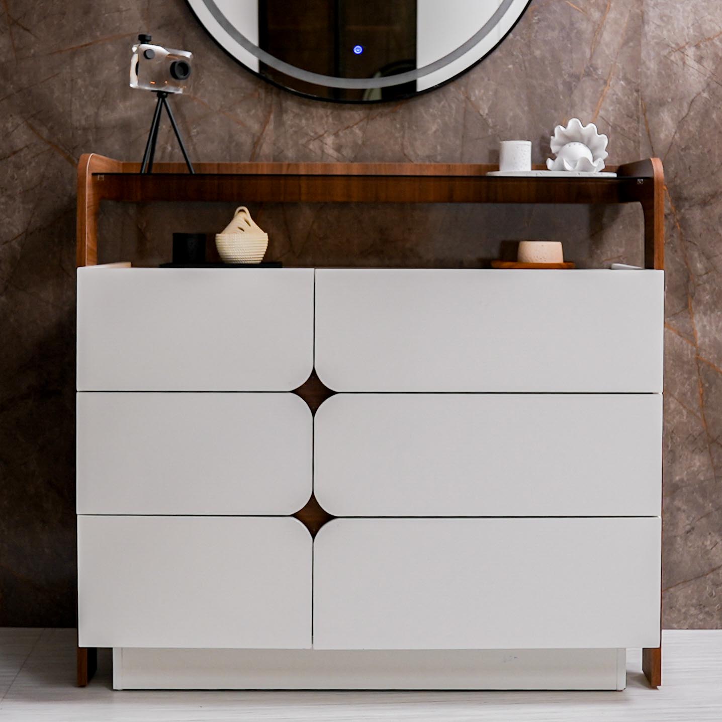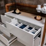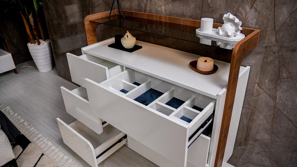 coiffeuse avec leur finition blanche impeccable et leurs lignes modernes.