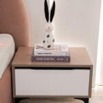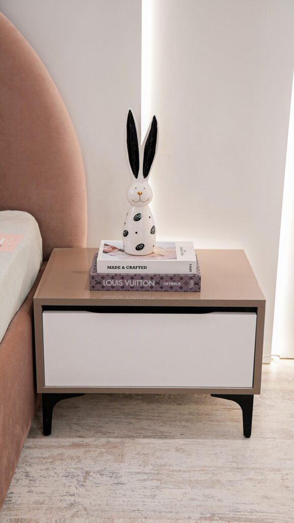 La Table de Nuit : Un design bicolore assorti, montée sur des pieds fins et