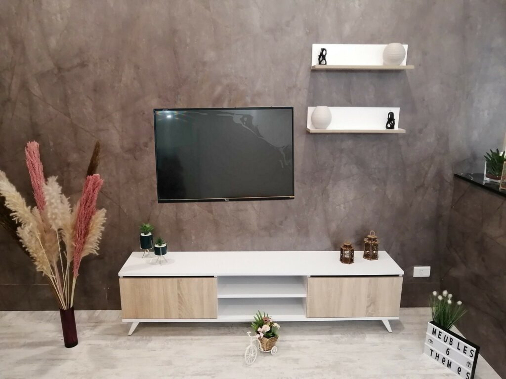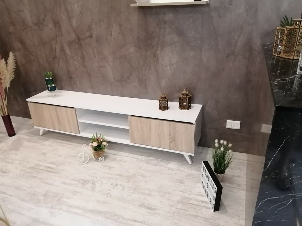 Redéfinissez l’esthétique de votre salon avec le Living Art 10. Cet ensemble TV de 1m80 incarne