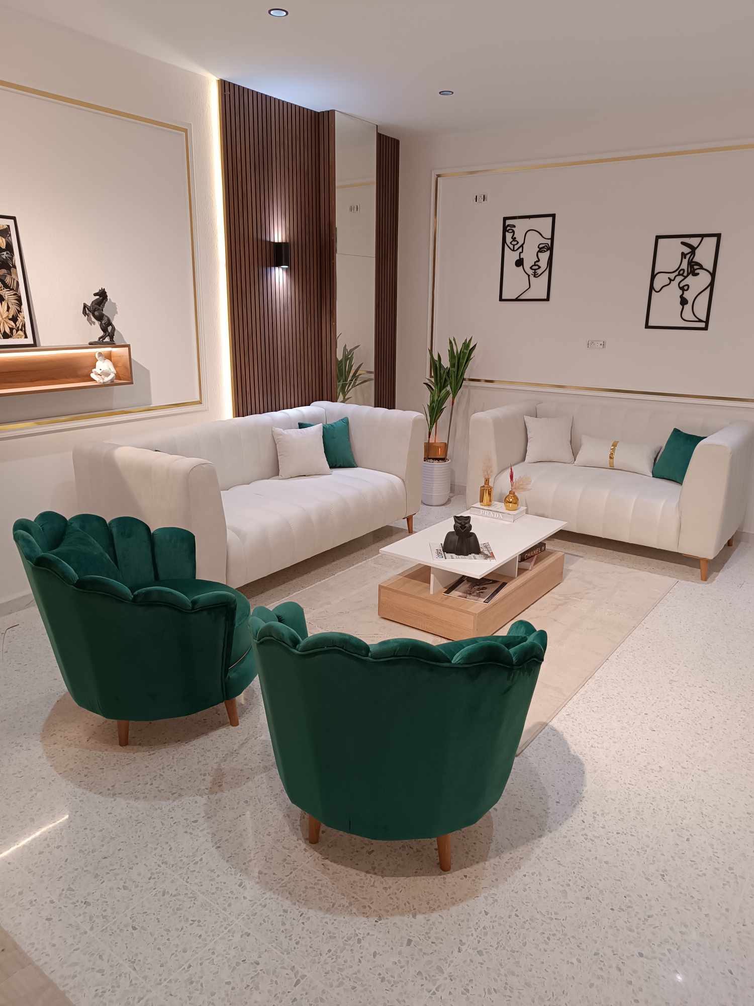 Design moderne et élégant, idéal pour un espace confortable et harmonieux 🤍 🔹 Carcasse en bois rouge 🔹 Mousse 28/30 pour un confort optimal 📐 Dimensions : 1 Canapé 3 places : Longueur 2,10 m × Profondeur 86 cm. 1 Canapé 2 places : Longueur 1,65 m × Profondeur 86 cm. 2 Fauteuils "Flora"