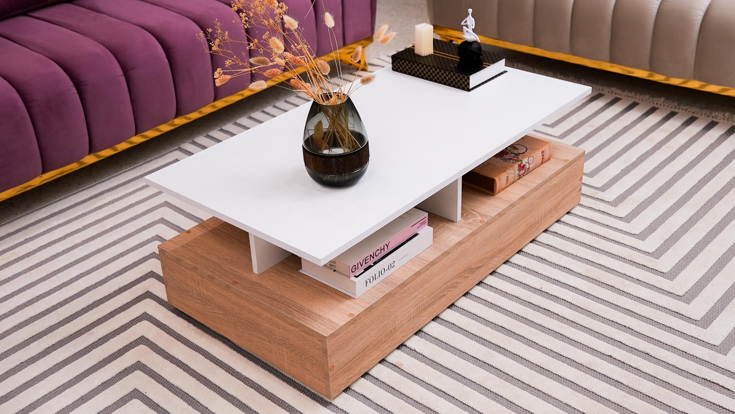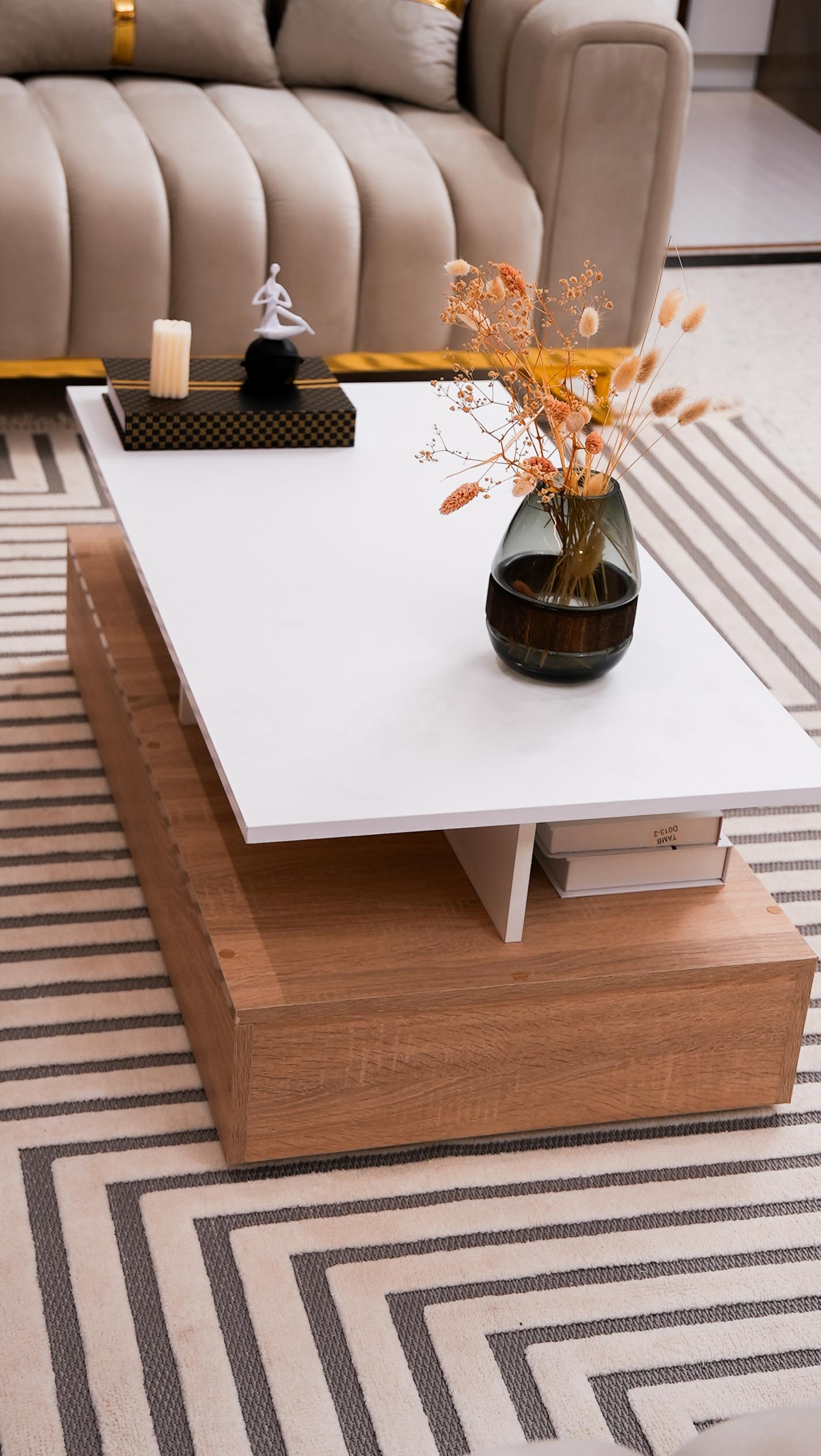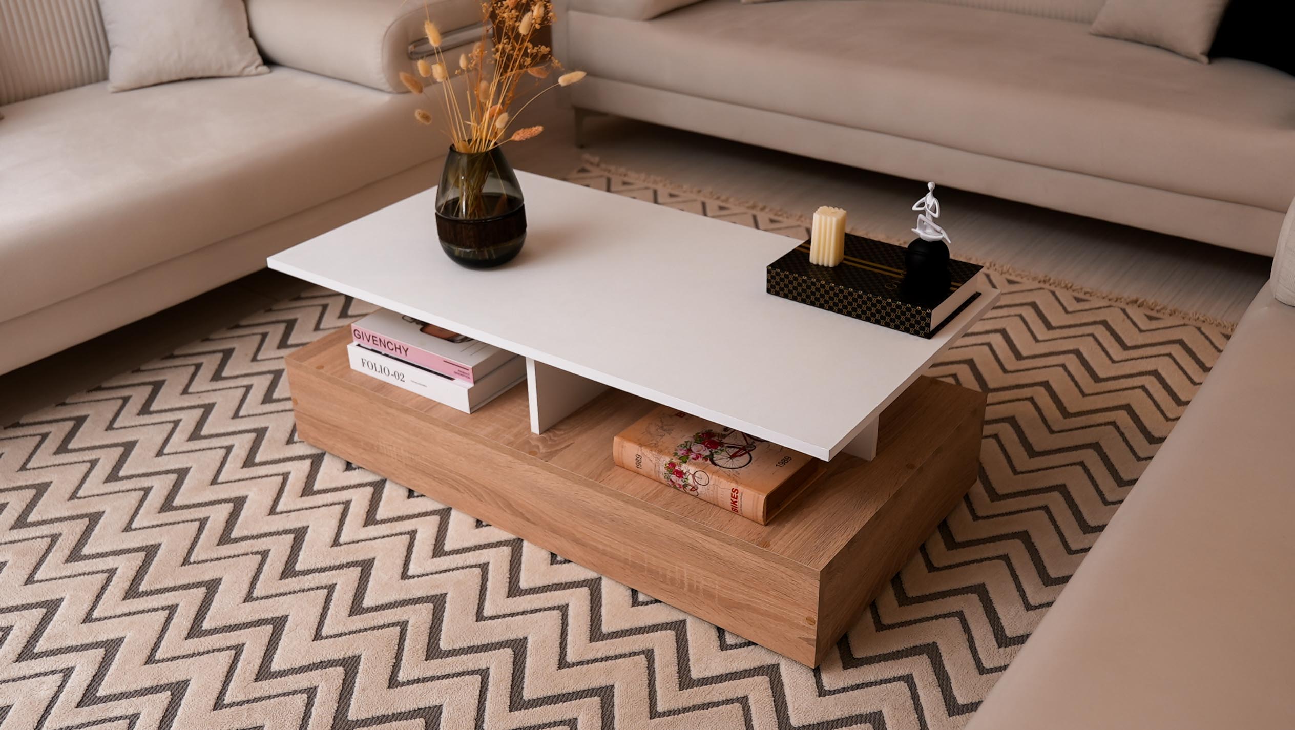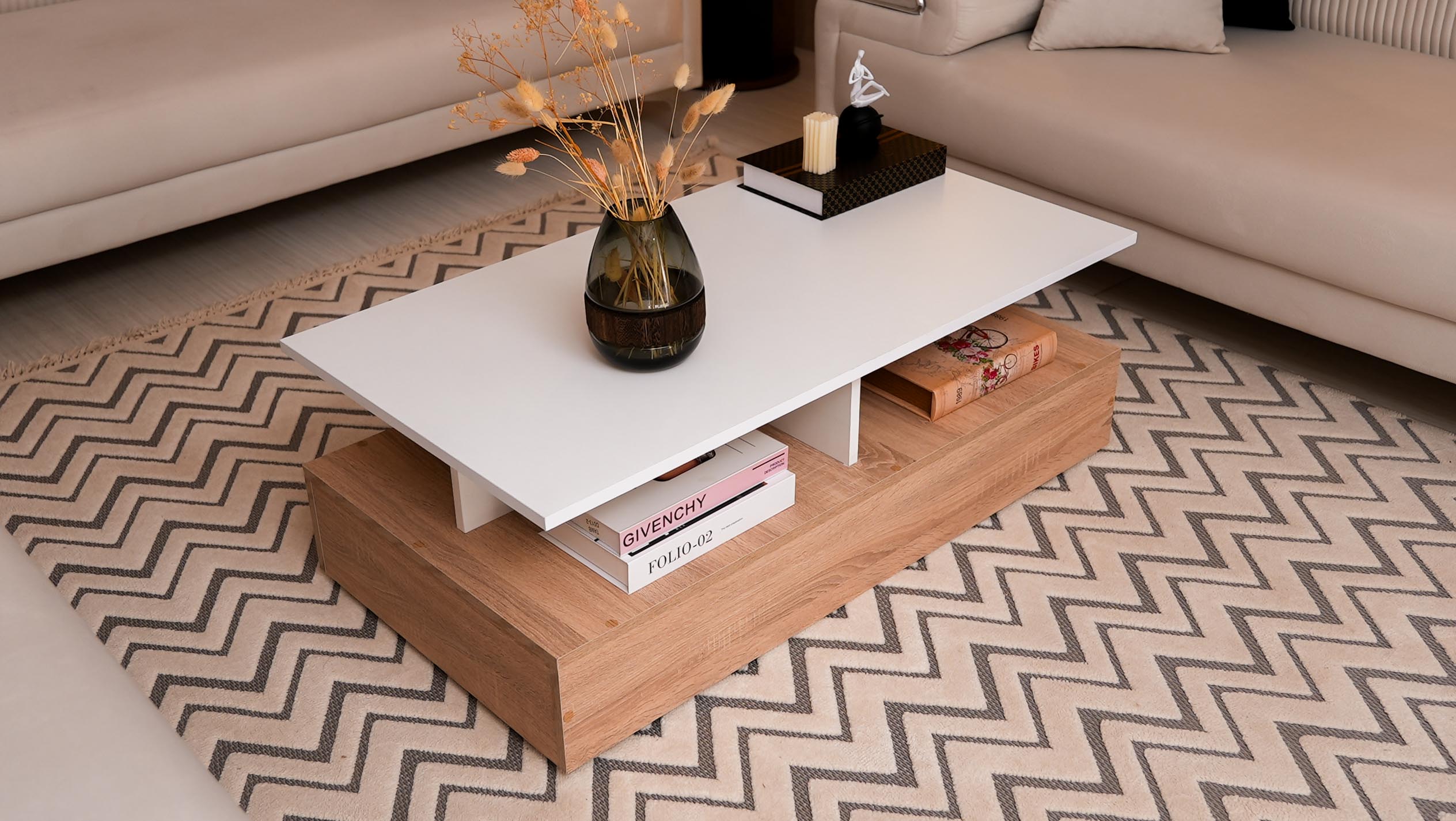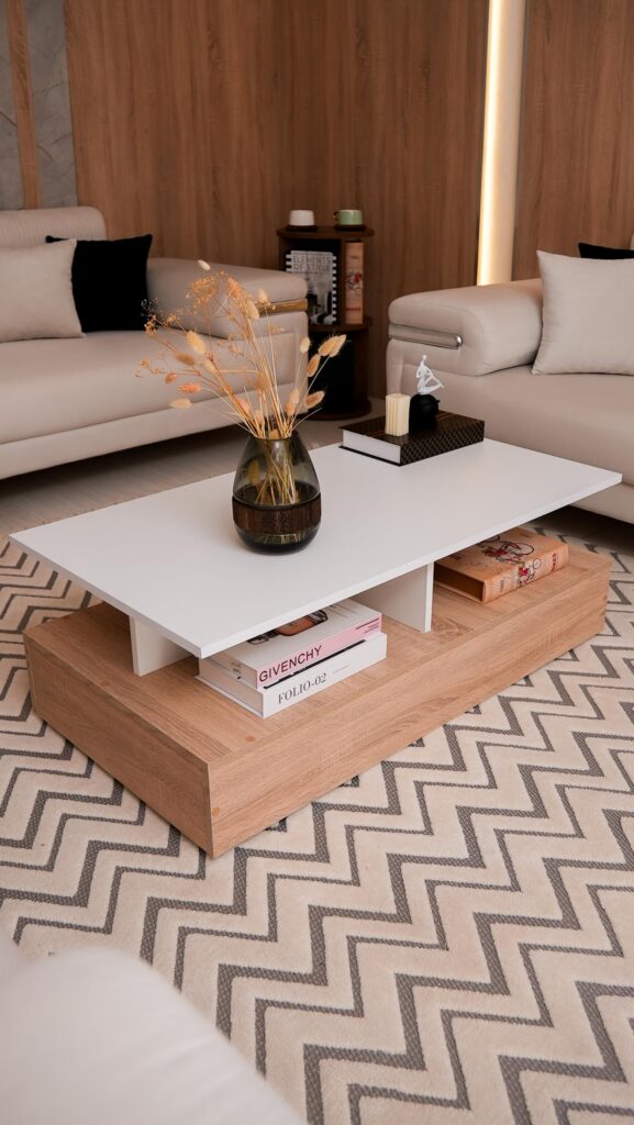 Le Design Flottant ✨ Craquez pour l'originalité de notre table basse Art 15, un mélange parfait de chic et de modernité pour votre salon. Style : Un design bicolore Blanc & Bois avec un effet de plateau suspendu unique. Rangement : Des niches ouvertes astucieuses pour un salon toujours bien ordonné. Structure : Une base solide en bois naturel pour un rendu chaleureux et robuste. Le petit plus : Son look architectural qui transforme instantanément votre coin canapé. 🔥 Une pièce maîtresse qui ne passera pas inaperçue !